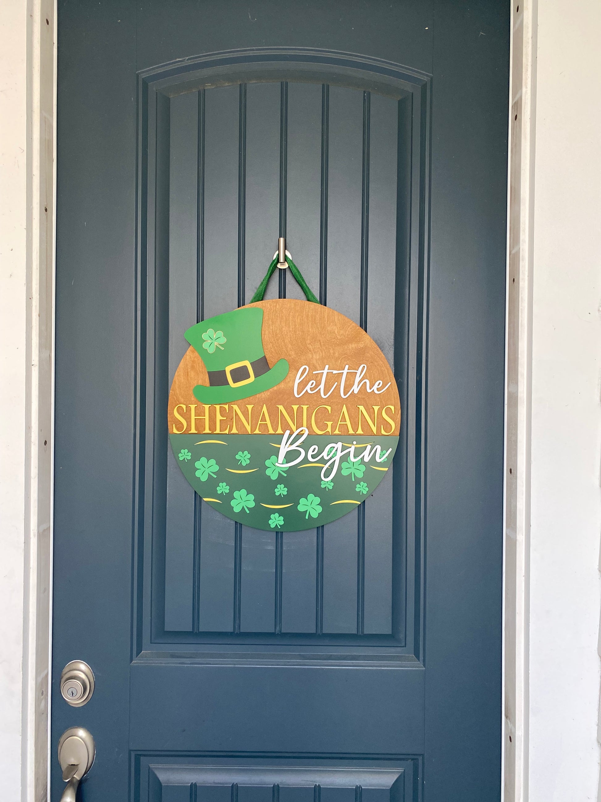 Add a touch of Irish charm to your home with our laser-engraved “Let the Shenanigans Begin” door hanger! Perfect for St. Patrick’s Day, this festive piece sets the tone for fun, laughter, and a little mischief!